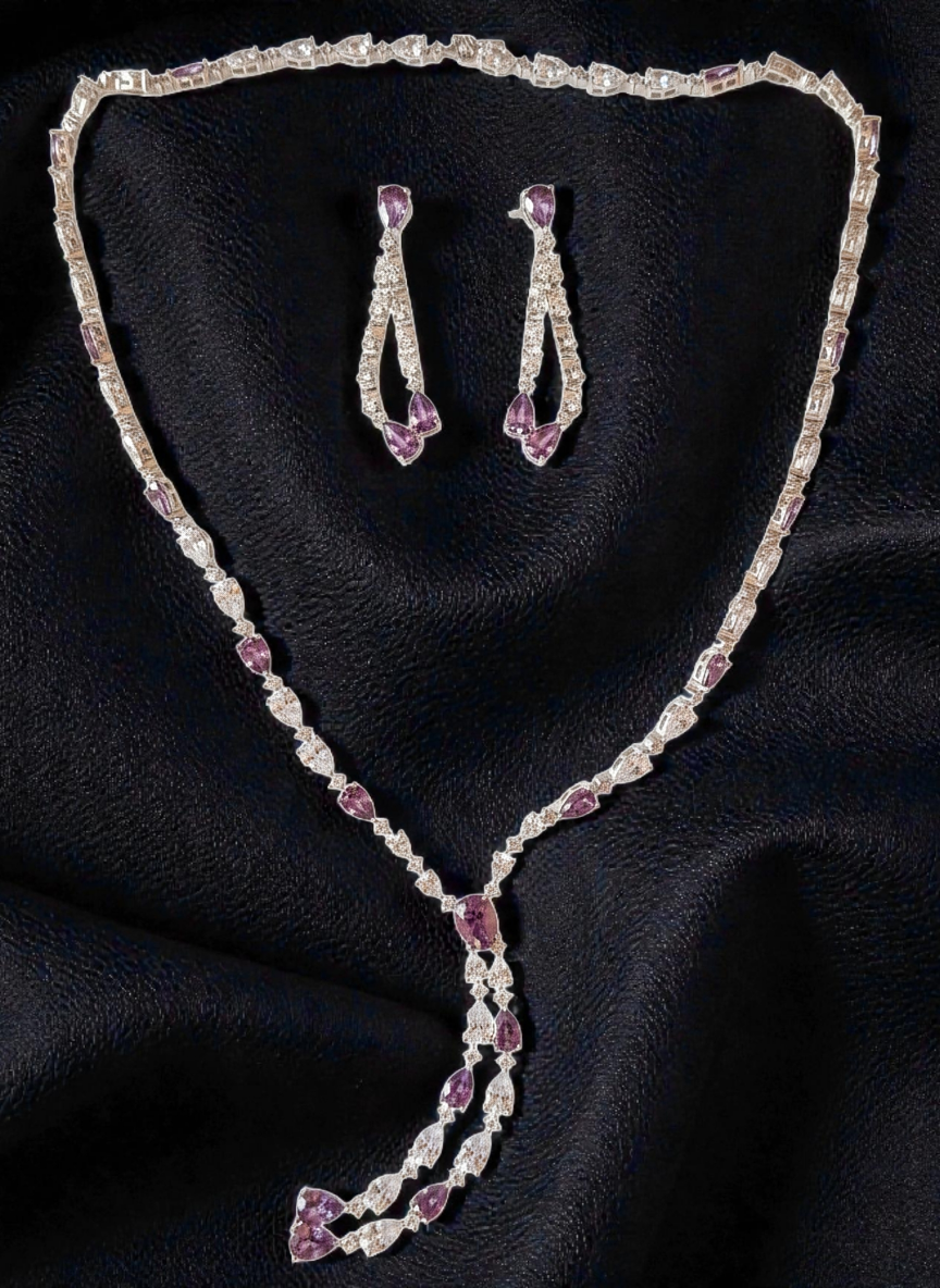 Add timeless elegance to your jewellery collection with this 925 Pure Silver Necklace and Earrings Set, crafted in a premium Italian design and embellished with sparkling Zircon White & Purple Stones.
